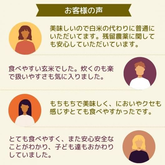 玄米の一番外側のロウ層に傷をつけているため、吸水が早く炊飯器の白米モードで炊くことができます。炊く前に20〜30分間吸水させ、白米の水量と同量〜1.5倍を目安とするとよりおいしく炊き上がります。研ぎ洗いのいらない無洗米玄米は環境にもやさしいお米です。